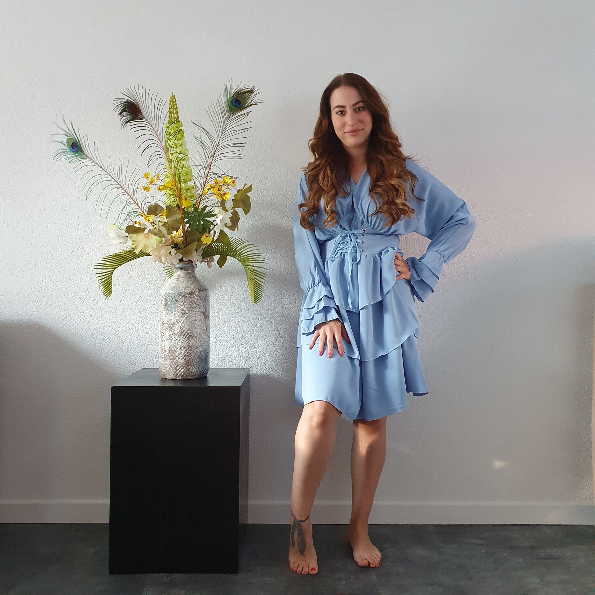 Lichtblauw met korsetsluiting