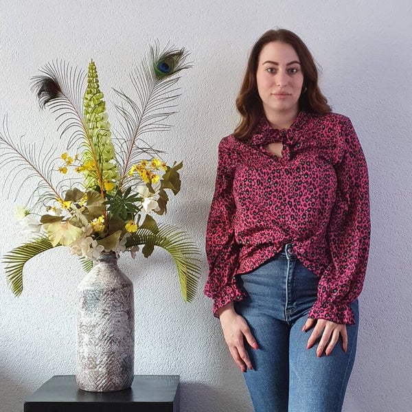 Roze Blouse met Groene Pantervlekken
