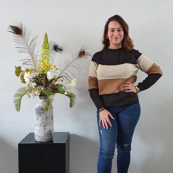 Trui Zwart/Beige/Bruin gouden bies