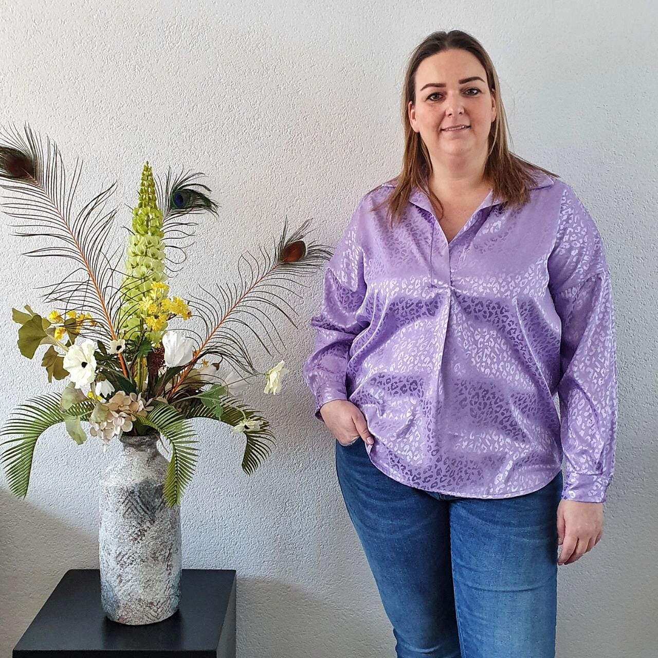 Blouse Lila met Luipaardmotief