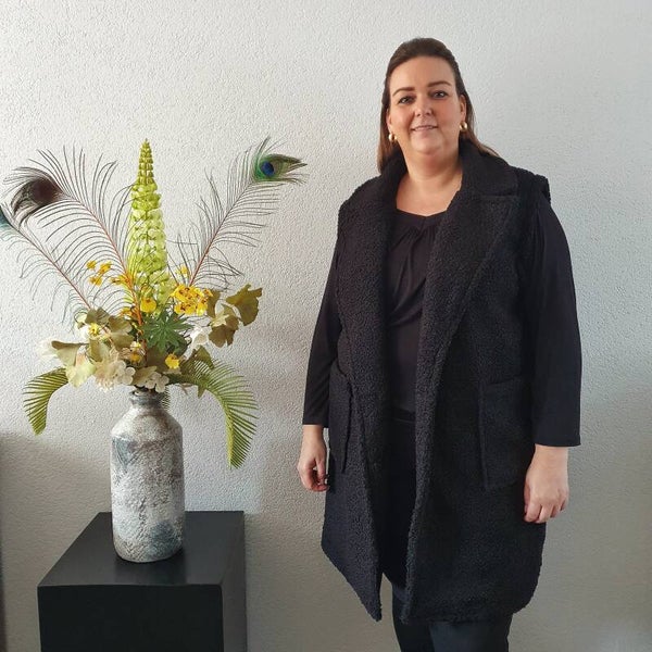 Teddy bodywarmer voorzien van twee zakken en is te sluiten met een knoopsluiting.