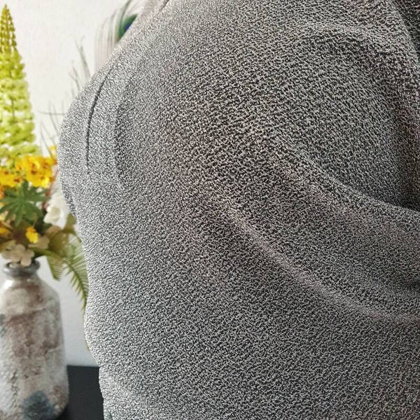 Zilvergrijs topje met een glitter-effect, voorzien van een driekwart-mouw. Gemakkelijk te combineren met allerlei outfits.