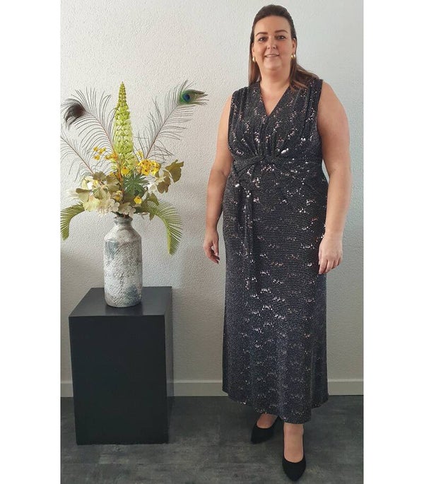 Zwarte lange jurk met Glitter en Pailletten